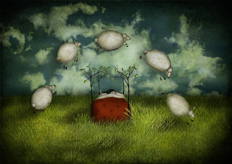 Some days she could count to a million sheep before she finally fell asleep. Most days she lost count. Thirty-one sheep, thirty-two sheep, thirty-four sheep… And off it went. The thirty-third sheep had escaped her mind and became free. This is how the first wild galactic sheep were born. From the drowsy miscounting of a tired queen.