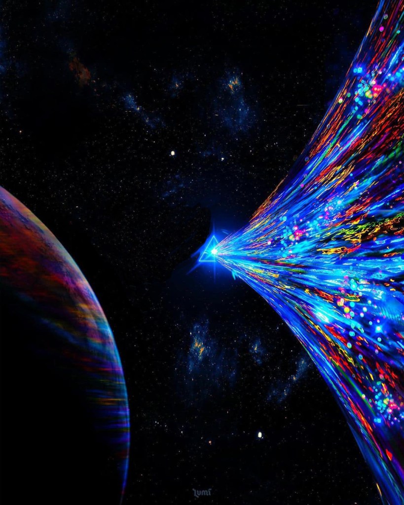 Unfortunately there was one storm when things got a bit out of hand, again. The good thing about being so tiny was that, most of the time, lightings missed the planet all together and they got lost in Space. Only once every 100 years a lighting managed to strike in the micro-spot where the planet was standing. When that happened, it usually hit one of the colours of the planet since it was covered in rainbows for the most part. And, as it did, it unlocked a colour gate and an answer hidden in that dimension revealed itself. An epiphany in colour.
