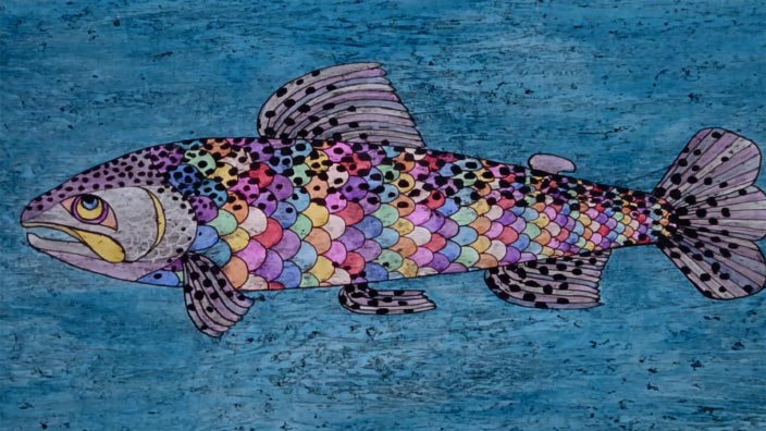It was a huge iridescent trout and as it swam among colours it mimicked their tones. It used to be as small as a mustard seed once but now with all the electrical boost it had become quite enormous.